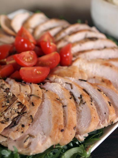 ヒジキ入り柚子胡椒ポテトサラダと、鶏胸肉のローズマリ−焼きにしようかな。