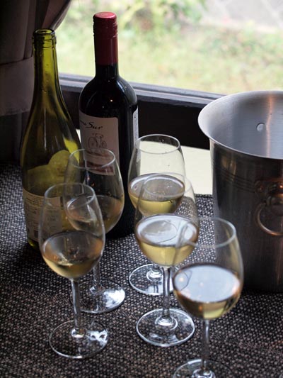 みなさんのお料理を、テーブルとは別に低めの木製の簞笥の上にずらりと並べ、ヴュッフェスタイルにしたのはリエさんのだんなさまのアイディア。よく、お仲間で飲んだりもされるそうで、お部屋の片隅にいろんなお酒がずらりと並んだバーコーナーがあって、まずはみんなでワインで乾杯♪