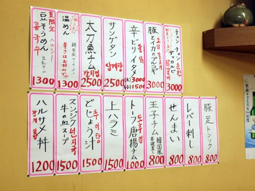 店内に入ったら、気さくなオモニが迎えてくれて、角にテレビ、壁にメニューベタベタ、お客さんは韓国人の方々と、なんだかソウル戻ったような(笑)