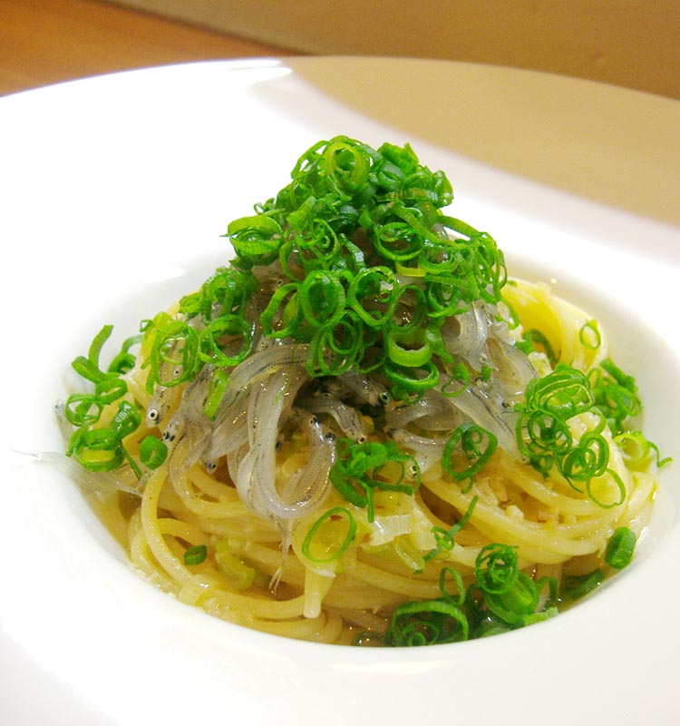 名物の生シラスたっぷりのせパスタ!