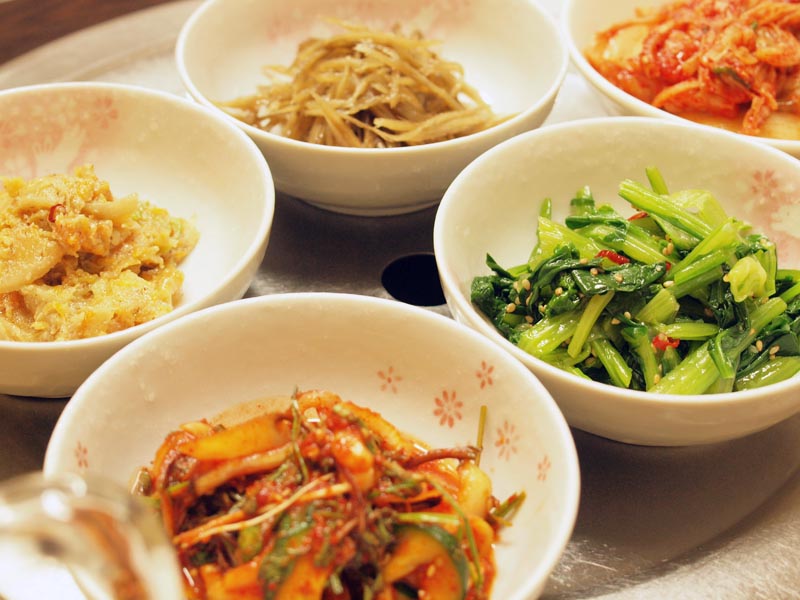 右上はおなじみの白菜キムチ、となりがきんぴらゴボウ風。
