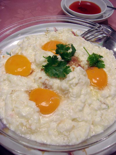 となりは、シェフ特製フカヒレ入り淡雪炒め。